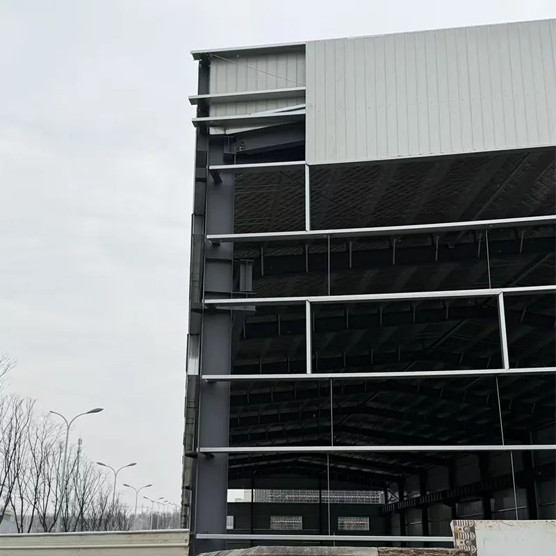 Un almacén con estructura de acero de gran altura libre es un sistema de construcción moderno, eficiente y rentable diseñado para logística, fabricación, almacenamiento, distribución y uso en talleres. Todos los componentes principales, incluidos el marco del pórtico, las columnas, las vigas, los refuerzos, los paneles de techo y pared, las puertas, las ventanas y los accesorios, se prefabrican en fábrica y se ensamblan en el sitio mediante conexiones atornilladas.