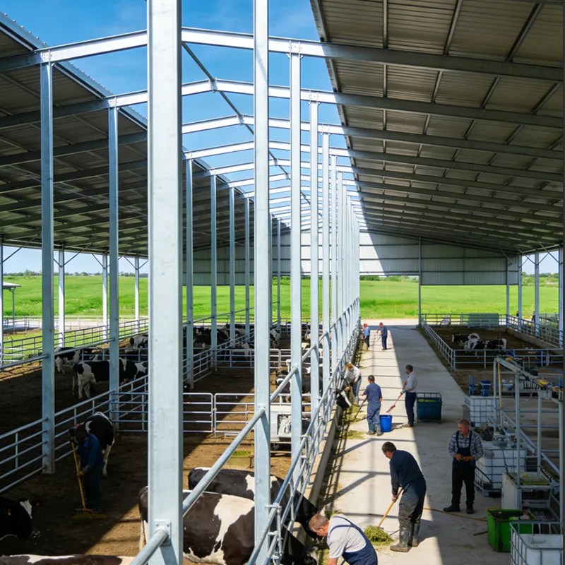 Cobertizo para ganado y establo lechero con estructura de acero